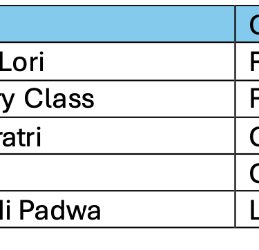 Language lessons – Slokas. Currently on Sunday afternoons from 3 to 5. Contact 214-513-2562 to enroll in Sacred Sounds.